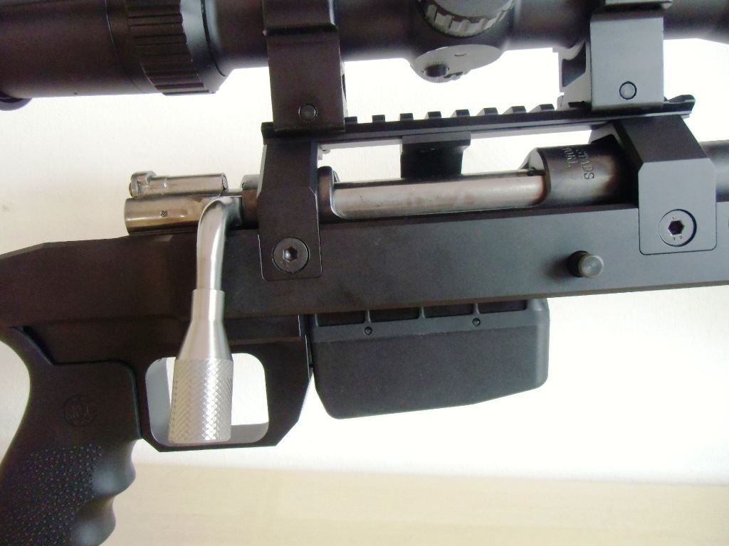 Nach Erhalt des kompletten Schafts musste ich nochmal einige Zeit auf die Systemhülse warten, die leider nicht so schnell vom Beschussamt zurückgekommen ist, wie ich es mir erhofft hatte. Nach dem Einbau in den Schaft und der Montage des neuen Zielfernrohrs gab es dann auch erstmal eine Erleichterung für mich, dass der gebogene Kammerstengel auch tatsächlich nirgendwo anschlug (schließlich gab es ja vorab einen Prototypen der Schaftbasis) und auch der nachträglich montierte Rändelknauf in einer sehr bequemen Position lag.