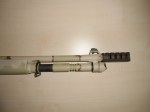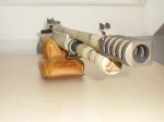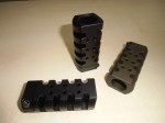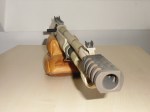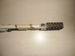 Der auf der Flinte montierte Kompensator ist übrigens in einem Braunton gehalten. In schwarz eloxiert ergibt sich ein perfektes samtig mattes schwarz, das auf den oberen Bildern (immer ohne Flinte) zu sehen ist. Bei Bildern mit Schattenbildung wurde mit Blitz fotografiert, das ist bei den nachfolgenden Bildern durchweg der Fall.