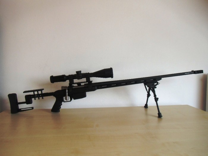 Es folgt der Vorderschaft und seine Befestigung. Der Vorderschaft ist aus einem Aluminiumprofil 40x80L I-Typ Nut 8 gefertigt. Griff und weitere Teile wie die Schaftbacke und zugehörige Teile werden gefertigt. Nicht abgebildet sind ZF-Schiene, Ausarbeitung des Griffs und weitere Detailarbeiten an den gezeigten Teilen. Es werden auch erste Gewichtsreduzierungen durchgeführt, bspw. an der Basisschiene. Auf den Bildern sind einige Details der Basisschiene zu erkennen. So z.B. der Magazinschaft für den späteren Umbau von Einzellader auf Mehrlader in V2.0 sowie der lange Schlitz zur Aufnahme des Abzugsgehäuses. Fertige V1.0 und Schussbilder von der Einschießprozedur in Teil 6.