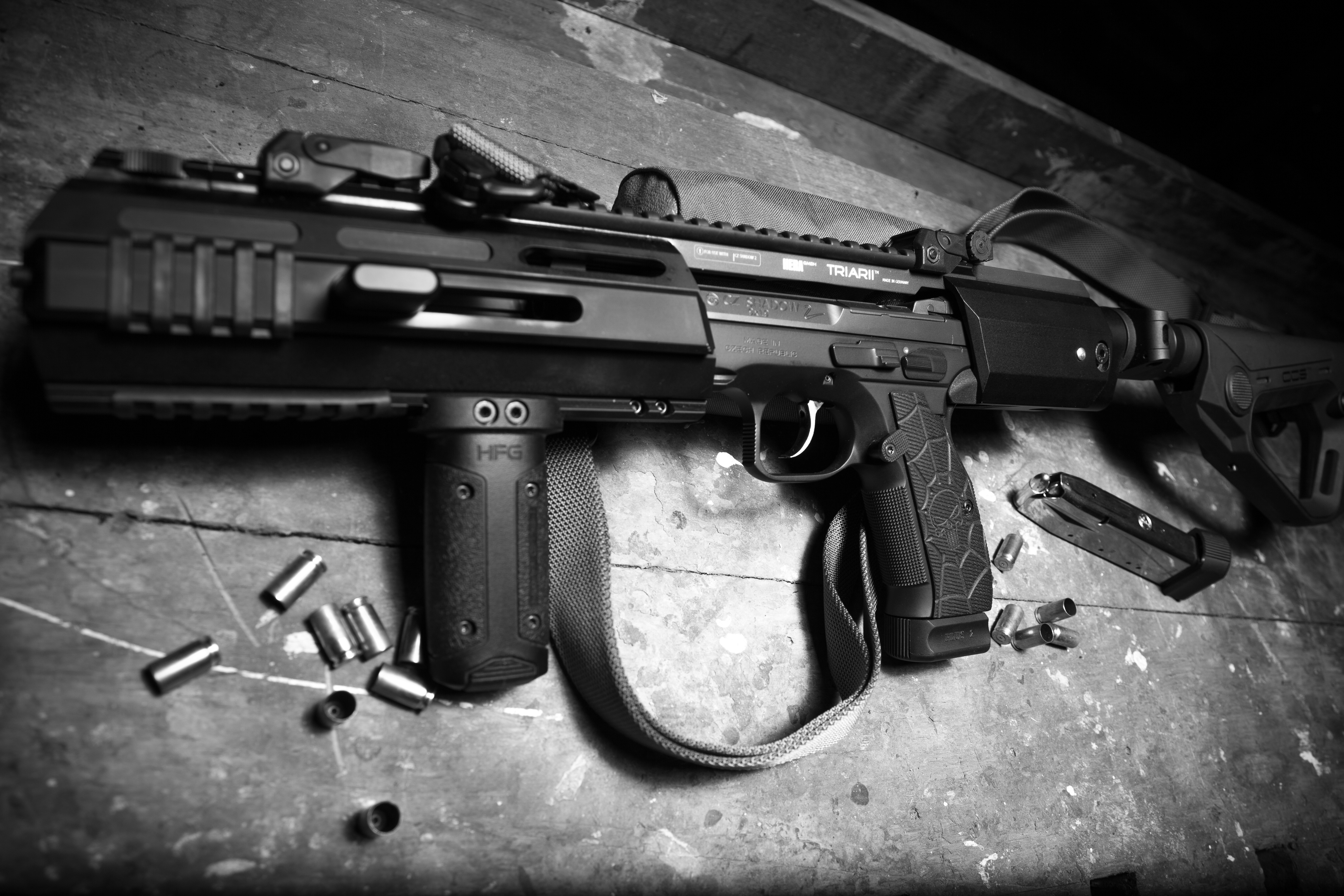 Aktuell wird der Triarii für Modelle von CZ, Walther, Glock und HK angeboten. Die RTU-Variante hat im CCS Hinterschaft noch zwei QD-Ösen sowie zwei Ösen zur direkten Aufnahme eines Gurtes verbaut.