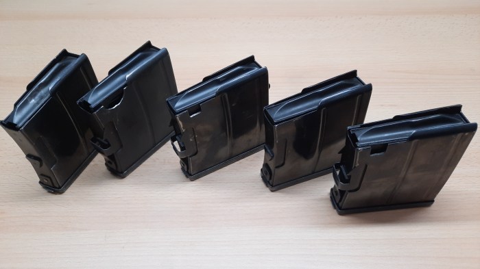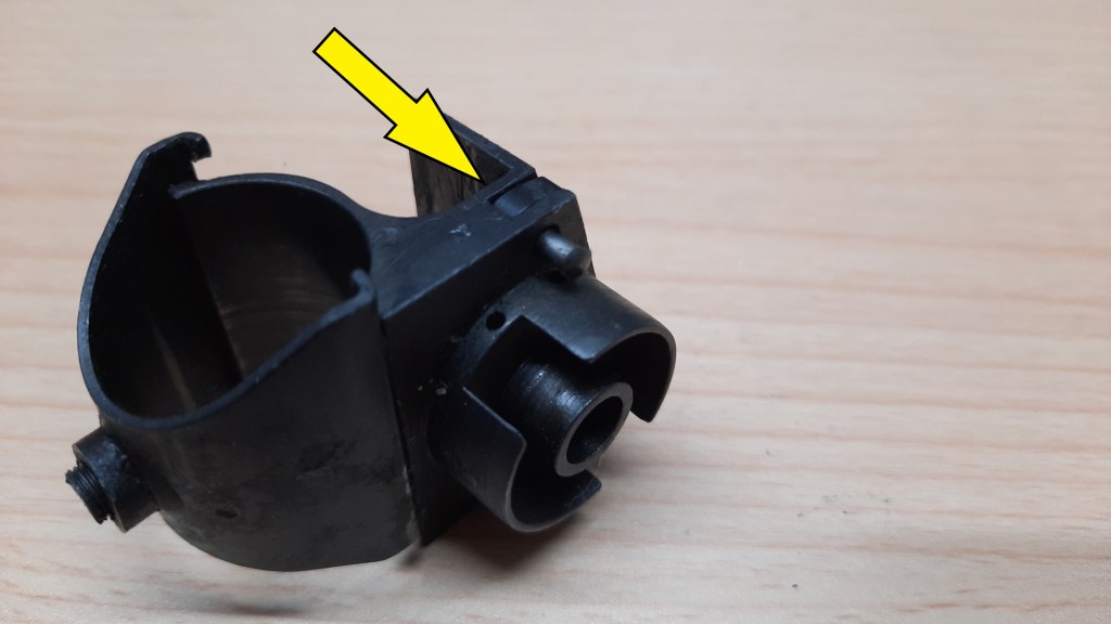 Sollte man das Glück haben, online ein Magazin eines Ljungmans kaufen zu können, so kann man ein in der Kapazität begrenztes Magazin nun zumindest von Außen an seinen innen gesetzten Schweißpunkten erkennen, siehe gelber Pfeil.