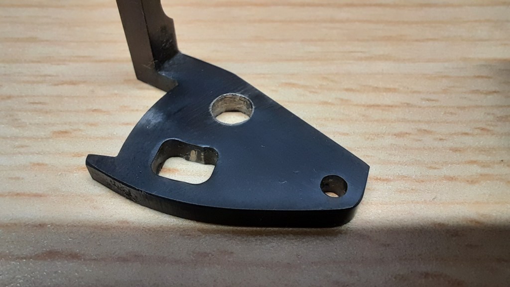 Mit der Dreikantfeile habe ich zuerst die beiden Schweißpunkte bis auf das Magazinblech hin heruntergefeilt, mit der Kante der Feile kommt man zudem auch noch sehr gut in die Ecke zum Flachstahl hinein. Anschließend habe ich das Sägeblatt einer PUK-Säge genommen und das restliche Schweißlot ausgesägt. Das Spaltmaß zwischen Flachstahl und Magazinwand war dabei leider nicht groß genug für das Sägeblatt, sodass ich mich quasi von oben noch durch die kompletten 3-4mm Flachstahl hindurchsägen musste. Bei dem kleinen Hub, den man mit dem Sägeblatt machen kann, bevor man von unten an den Magazinzubringer stößt, war das eine Arbeit, die sich bei mir über drei Tage erstreckt hat. Mit der kompletten PUK-Säge hat man übrigens keine Chance, das Sägeblatt zu platzieren und so ergibt sich das Problem, dass das Sägeblatt ohne Griff absolut nicht ergonomisch ist. So habe ich mir an dessen Ende mit einem Stofffetzen beholfen, der macht das Ganze dann wieder einigermaßen griffig. Wer die Begrenzung also ein für alle Mal loswerden möchte, sollte mindestens drei neue Sägeblätter und ca. 5-6 Stunden Zeit mitbringen. Es sei denn, irgendein Aufsatz am Dremel kommt an die gewünschte Stelle.