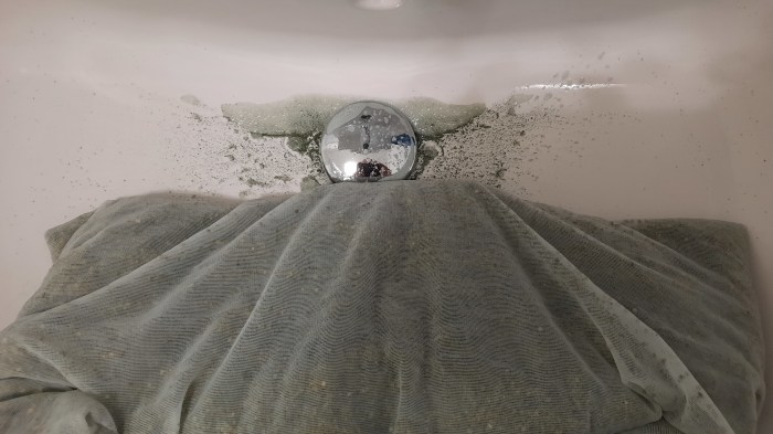 Während das erste Abwasser noch braun ist, wechselt die Farbe mit den weiteren Spülvorgängen zu einem dunklen grün. Beim Ablassen des Wassers findet man mit der Zeit auch immer weniger Dreckpartikel am Abfluss…