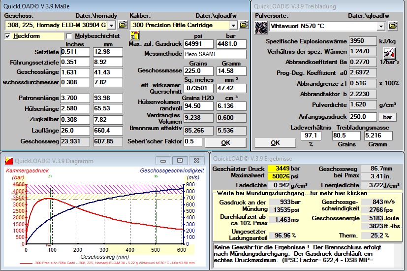 So habe ich Marvin gebeten, mal die nachfolgenden Laborierungen mit Quickload zu berechnen. Da ich kein Freund von zu eng abgestimmten Ladeleitern bin, habe ich dazu auch immer eine alternative mit nennenswertem Abstand zur maximalen Ladeempfehlung gewählt und teilweise auch getestet.