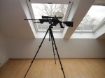 Für die Montage der Mündungsbremse habe ich das Gewehr mit Schraubzwingen auf die Tischkante gespannt (Schonbacken oder Ähnliches nicht vergessen!), sodass die Bremse frei lag und mit einem Maulschlüssel SW36 festgezogen werden konnte. Die waagrechte Ausrichtung habe ich im Anschluss mit einer auf der Bremse aufgeklebten Aluplatte geprüft (letztes Bild).