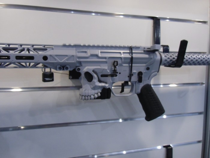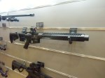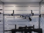 An diesem Stand habe ich mich nur kurz aufgehalten, weil ich den Eindruck hatte, dass wie in den Jahren zuvor schon die gesamte Produktpalette an der runden Theke verfügbar war. Selbst an den Wänden habe ich alte Bekannte wiedergesehen. Zwei neue Sachen habe ich in der schallgedämpften Pistole und in dem Schalldämpfer für das AR-15 gefunden. Schickes Design!