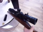 Hierbei handelt es sich um einen belgischen Hersteller, dessen thermale Vorsatzgeräte schon direkt am ZF befestigt werden können. Das Nano2 wurde mir mit einer (recht großen) Preisspanne von 7.000-12.000 Euro genannt. Was die beiden verzierten Gewehre in der Vitrine mit dem Hersteller zu tun haben, hätte ich mal besser vor Ort gefragt.