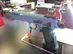 Den Stormtrooper-Helm habe ich schon von Weitem erblickt und ihn für ein Accessoir auf der Ausstellfläche gehalten. Erst bei näherer Betrachtung ist mir klar geworden, dass hier Star Wars-Fans in Personalunion mit Sportschützen voll auf Ihre Kosten kommen. Mit dem F-17 Blaster kann man eine voll funktionsfähige Schusswaffe des Herstellers Norlite zu einem Preis von ca. 1500 Euro kaufen. Die Firma Verex übernimmt für dieses Modell die optische Veredelung und mit dem Vertreter dieser Firma habe ich mich so eingehend unterhalten, dass ich heute leider keine näheren Angaben zum Kaliber des F-17 Blasters machen kann.