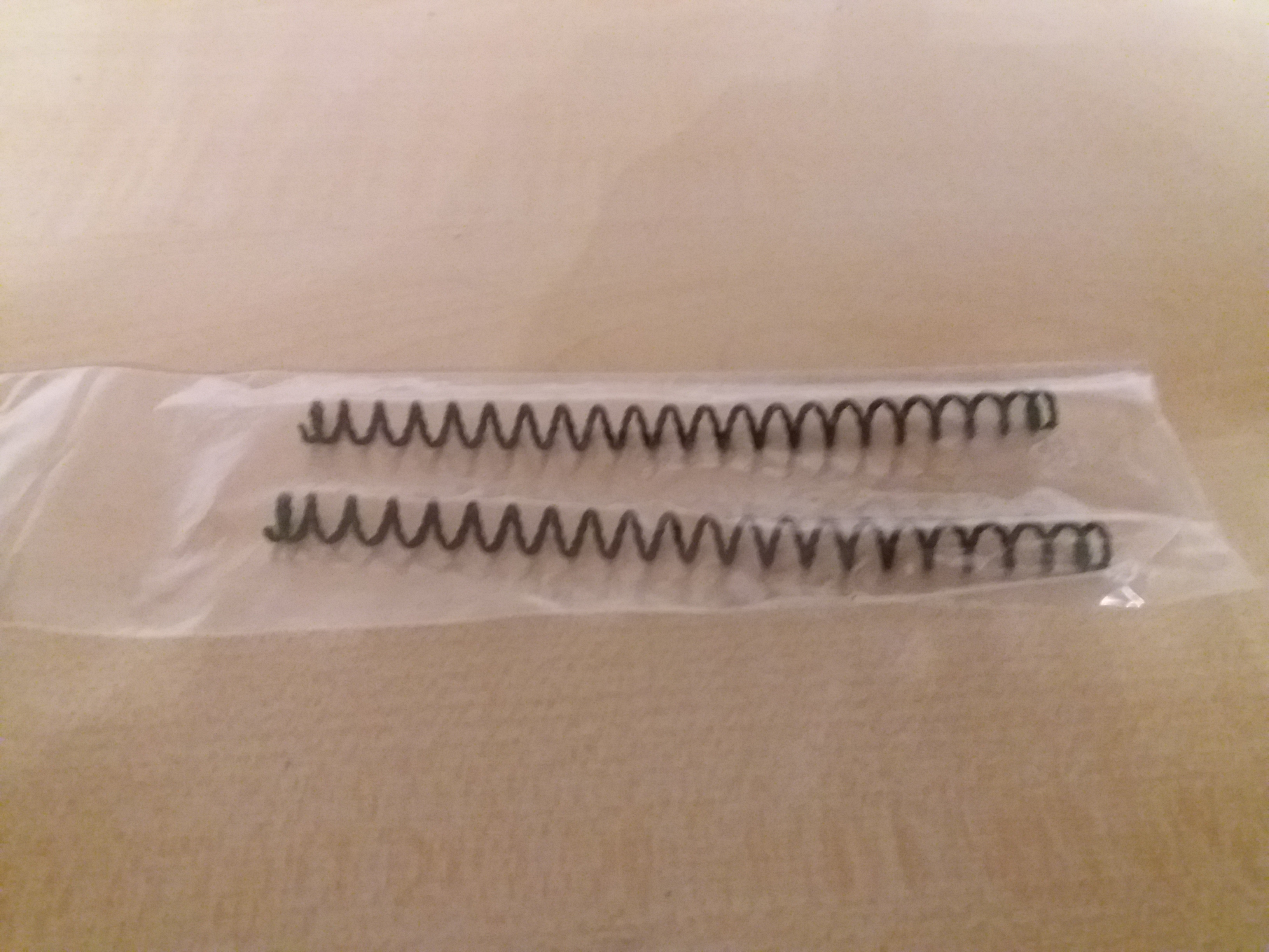 Folgt man also der Gleichung F=c*x (Neu: F=R*x) zur Berechnung der Federkraft, kann bei bekannter Auslenkung „x“ und gemessener Kraft „F“ die Federrate „c“ (Neu: „R“) berechnet werden. Sie ist jener Federkennwert, der die „Härte“ der Feder beschreibt. Mir reicht ein qualitativer Vergleich, so vernachlässige ich also die Betrachtung der Auslenkung „x“ und die Berechnung der tatsächlichen Federrate (aber nur, weil die Auslenkung „x“ in beiden Versuchen identisch ist!). Ich schaue mir also nur die gemessenen Kräfte an und stelle fest, dass es mit 36N für das alte Federpaar zu 51N beim neuen Federpaar erhebliche Unterschiede gibt! Mit anderen Worten: Das alte Federpaar hat nur noch 70% der Federsteifigkeit im Vergleich zu den beiden neuwertigen Federn. Da die Gleichung eine lineare Variable (nämlich die Auslenkung „x“) hat, ist es auch völlig egal, wie sehr ich die Federpaare im Versuch vorgespannt hätte, die obige Aussage bleibt gleich – wie gesagt, solange die Auslenkung für beide Versuche ebenfalls gleich gross ist.