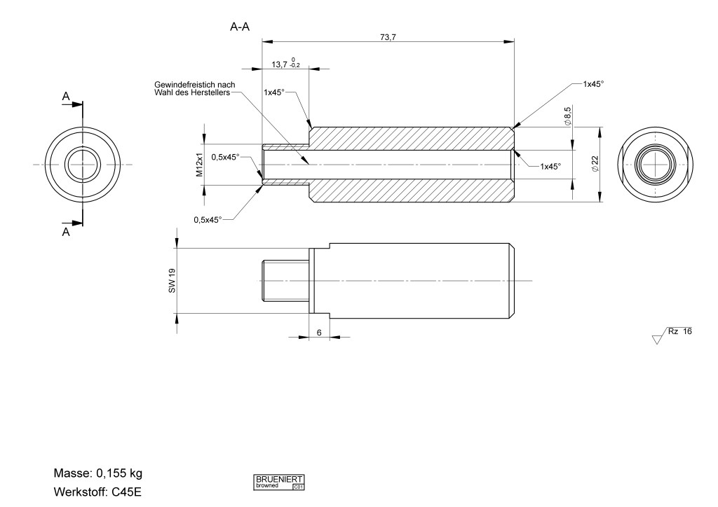 Wer die Verschlussschraube in einer längeren Form benötigt, kann also nachfolgende Zeichnung verwenden:
