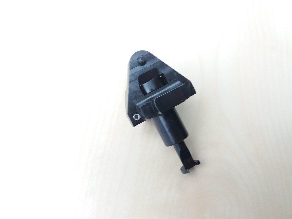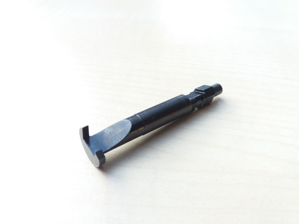 Die Schraube besitzt laut Zeichnung Überlänge und wird den Gaskanal (ich habe seinen Innendurchmesser mit D= 2mm ermittelt) komplett verschließen. Angefertigt aus einem vergüteten Edelstahl braucht sie nachträglich nicht mehr gehärtet zu werden, lässt sich dafür aber auch leider nicht brünieren.
