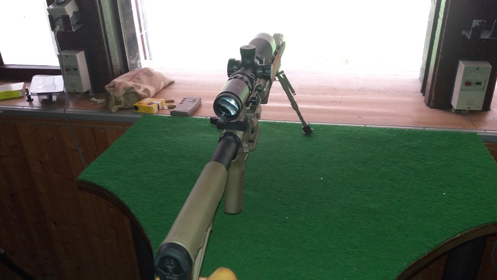 Im Oktober 2016 habe ich mein AR in der oben zu sehenden Konfiguration mit neuem ZF von Tac Vector Optics mit auf den Truppenübungsplatz genommen. Dabei habe ich eine Drop-Chart (sie kann im Bereich Downloads heruntergeladen werden) für Klickwerte bis einschließlich 700m Entfernung ermittelt. Bei einer Entfernung von 800m war dann leider der Verstellbereich des ZFs am Ende angelangt, die einschlagenden Geschosse konnten zwar noch beobachtet werden, eine zuverlässige und vor allem wiederholgenaue Ermittlung des Klickwertes war aber leider nicht mehr möglich.