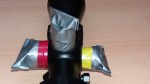 Der Streifen Isolierband muss dabei nicht sauber halbiert werden. Die gerade Kante wird in Richtung Gummiring geklebt und ergibt einen sauberen Abschluss, die geschnittene Kante ragt einfach unter den Okulartubus. In den Spalt wird nie einer genauer hinein schauen und außerdem wird die schmale stirnseitige Kante des Okulartubus´ mitlackiert – die sieht man hingegen sofort.