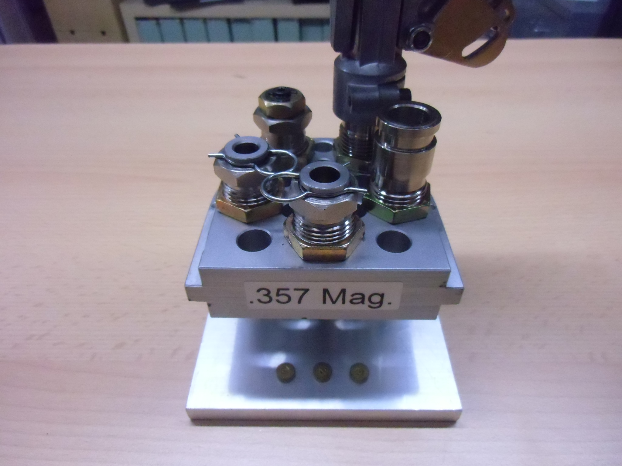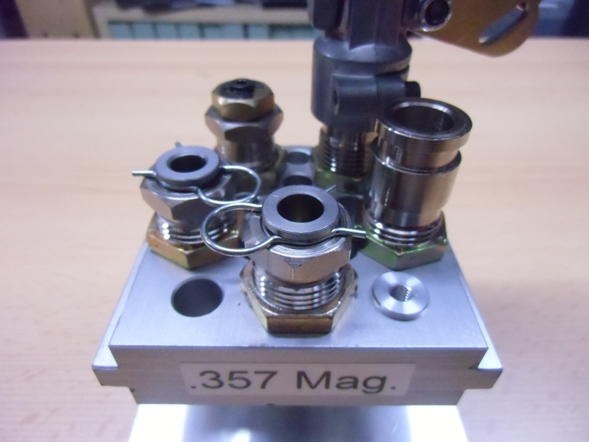 Diese Ladepresse benutze ich lediglich für meine Präzisionsmunition für Langwaffen. Das Kaliber .223 Rem. gehört in diesem Fall nicht dazu, auch wenn ich meine beiden ARs für recht präzise halte. Für diese beiden Munitionsvernichter SRB und das 18″-Upper verwende ich die Dillon XL650. Beim Hülsenhalter des für das neue Kaliber 6,5×55 Schwede gekauften Matrizensatzes 13201 von RCBS musste ich für die Verwendung mit der Lee allerdings dessen Durchgangsbohrung auf D=6,5mm aufbohren. Ansonsten hätte der Teller für die Zündhütchen nicht mehr hindurch gepasst. Achtung, es handelt sich beim Hülsenhalter um höherfesten Stahl, auf einen scharfen Bohrer und ausreichend Kühlung ist zu achten!