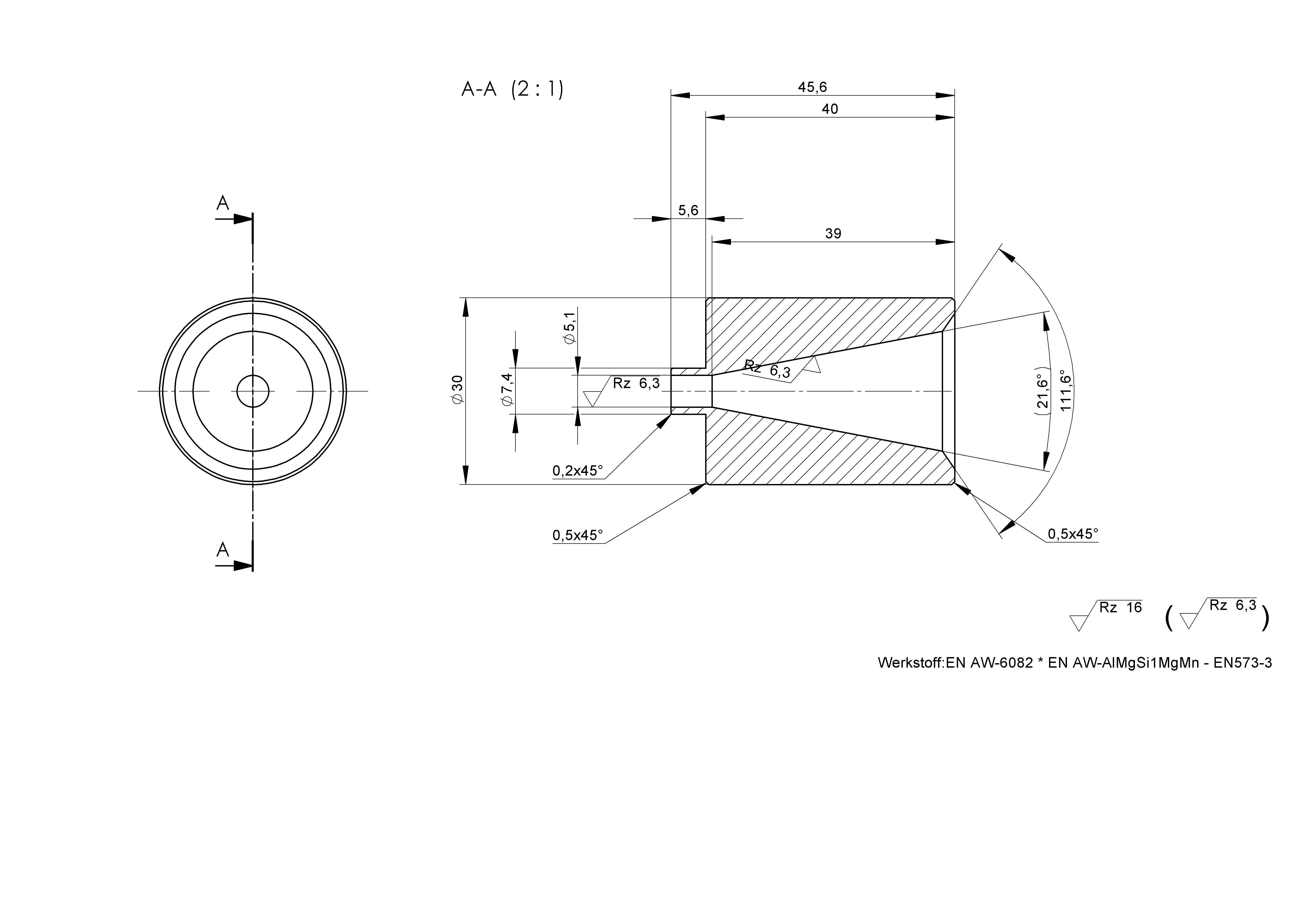 Für die Anfertigung des Ständers benötigt man lediglich die beiden Teile laut nachfolgenden Zeichnungen und eine Senkschraube ISO 10642 M8x20-A2. Der Zusammenbau ist denkbar einfach.