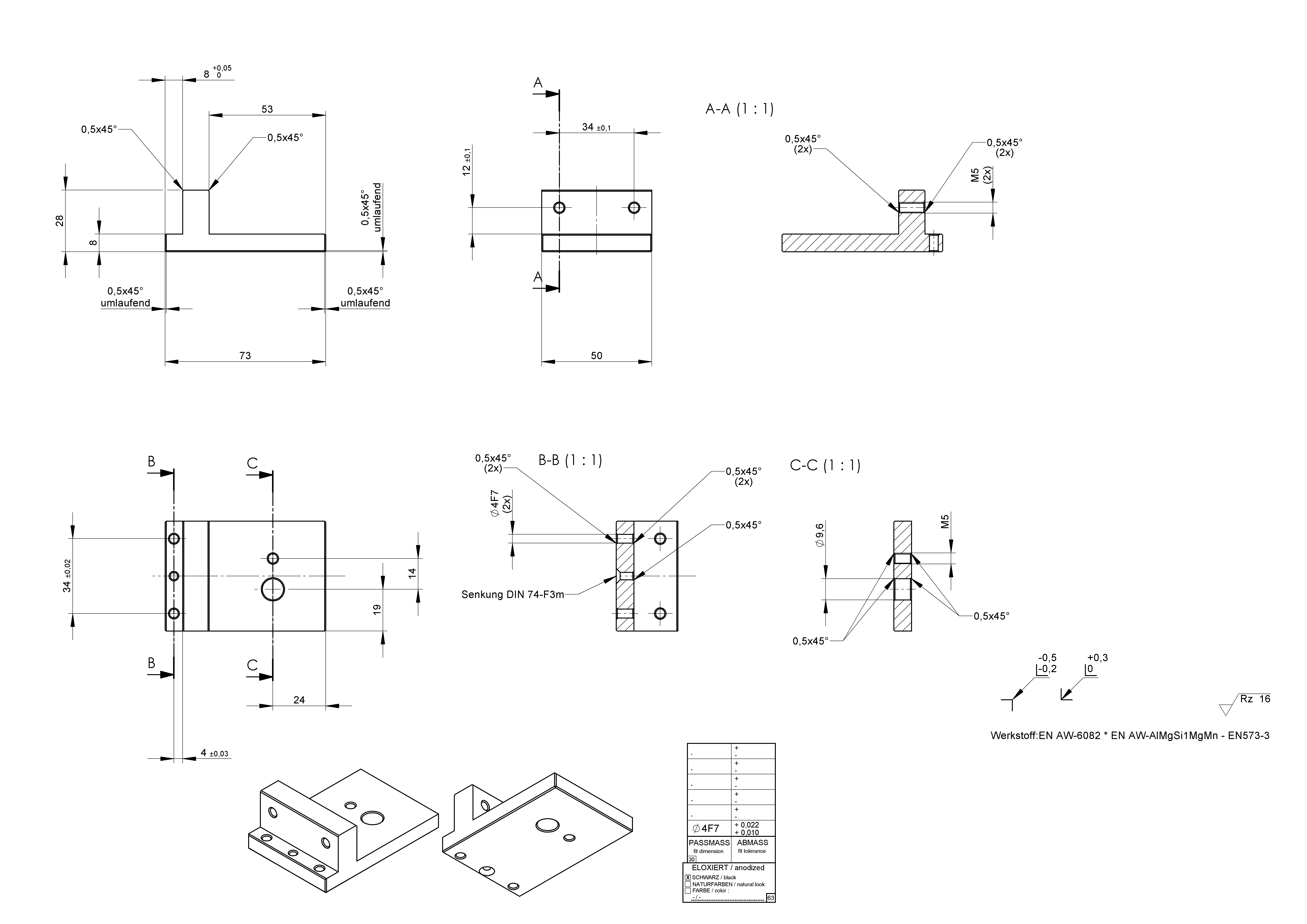 Als letztes wird die Scheibe mit der Schraube M3x8-A2 von unten gegen den am Adapter heraus stehenden Stift geschraubt und die Konstruktion ist einsatzbereit!