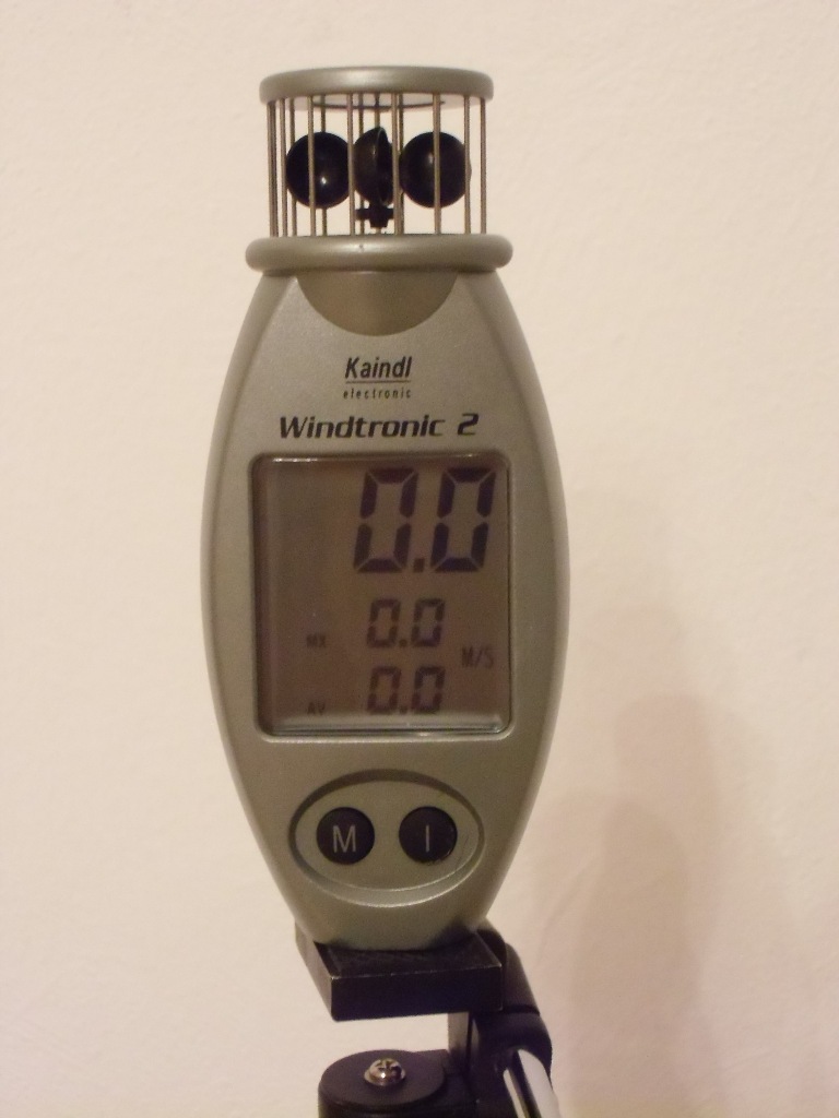 Kurz vor dem Event habe ich noch eine wichtige Lieferung bekommen: Meinen Windmesser von Kaindl, den „Windmaster2“ oder auch „Windtronic2“, wie es auf dem Gerät selbst steht. Den gab es inklusive Tasche für 56 Euro bei Amazon.