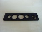 Der Adapter mit Entfernungsmesser wird danach in die Strebe 2 eingesetzt und durch die gebogene Langlochfräsung mit der Rändelschraube befestigt. Zuvor muss allerdings noch die Passscheibe 6x12x0,4 zwischen Adapter und Strebe 2 eingelegt werden.