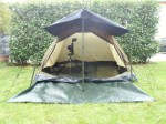 Da der Zeltboden nicht unbedingt der stärkste ist, empfehle ich hier unbedingt noch eine PE-Folie aus dem Baumarkt oder BW-Zeltplanen als Unterlage, damit kleine Unebenheiten nicht gleich zu Löchern führen.